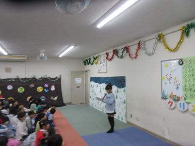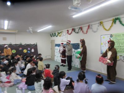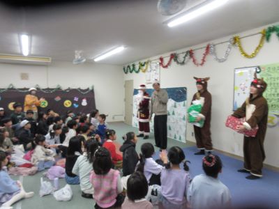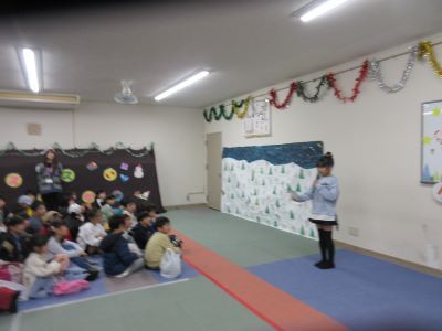 クリスマス会では、学童保育のこどもたちの出し物(ダンス)、主任児童委員さんの出し物や大学生の手話歌やマジックショーがありました。司会もプログラムを紹介してスムーズに進行してくれました。