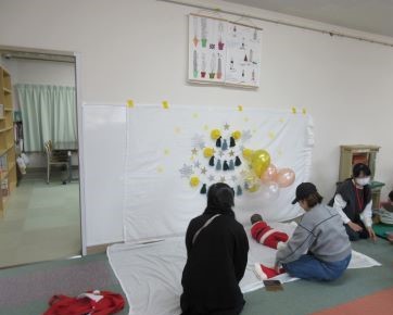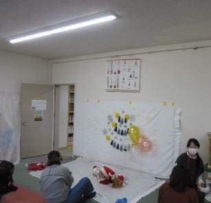 フォトブースでは、サンタさんの衣装や帽子、カチューシャ等を