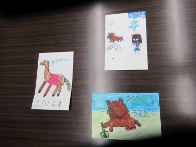 ふれあい工作では、年賀状を書きたいこどもたちは申し込み制で「年賀状作り」に
