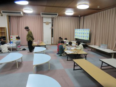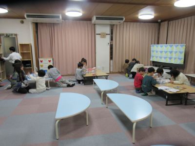 今日は小さなパーツを自由に組み合わせて、説明書にしたがって作る遊びをしました。