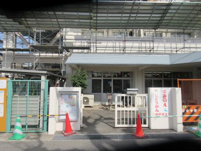 塚の前住宅の外壁改修工事が進んでおります。つきましては、足場の撤去作業に伴い、以下の通り「なかよしひろば」を中止とさせていただくことに急遽決定いたしました。